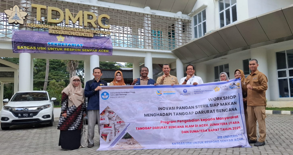 Rangkaian bencana yang terjadi di Aceh, Sumatera Utara, dan Sumatera Barat pada akhir November 2025 mendorong terbangunnya kerja sama lintas perguruan tinggi untuk memperkuat upaya tanggap darurat, terutama dalam penyediaan pangan siap santap yang aman dan bernilai gizi. Melalui Program Pengabdian kepada Masyarakat Tanggap Darurat Bencana 2025 yang digagas oleh Kemdiktisaintek, IPB University berkolaborasi dengan Universitas Syiah Kuala (USK) yang berperan sebagai kampus posko di Aceh.
